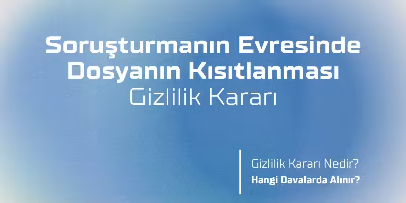 Soruşturma aşamasında “gizlilik kararı” ya da kanundaki adıyla “kısıtlılık kararı” savcının talebi Sulh Ceza Hakiminin kararıyla alınır. Soruşturma evresinde dosyanın kısıtlanması yani gizlilik kararı alınması CMK 153. maddede düzenlenmiştir. CMK 153 uyarınca; müdafiin dosya içeriğini inceleme veya belgelerden örnek alma yetkisi, soruşturmanın amacını tehlikeye düşürebilecek ise Cumhuriyet savcısının istemi üzerine hakim kararıyla kısıtlanabilir. Bunun için kanunda sayılan suç tiplerinden biri hakkında soruşturma yürütülüyor olmalıdır. Her suç tipi için kısıtlama kararı alınamaz.